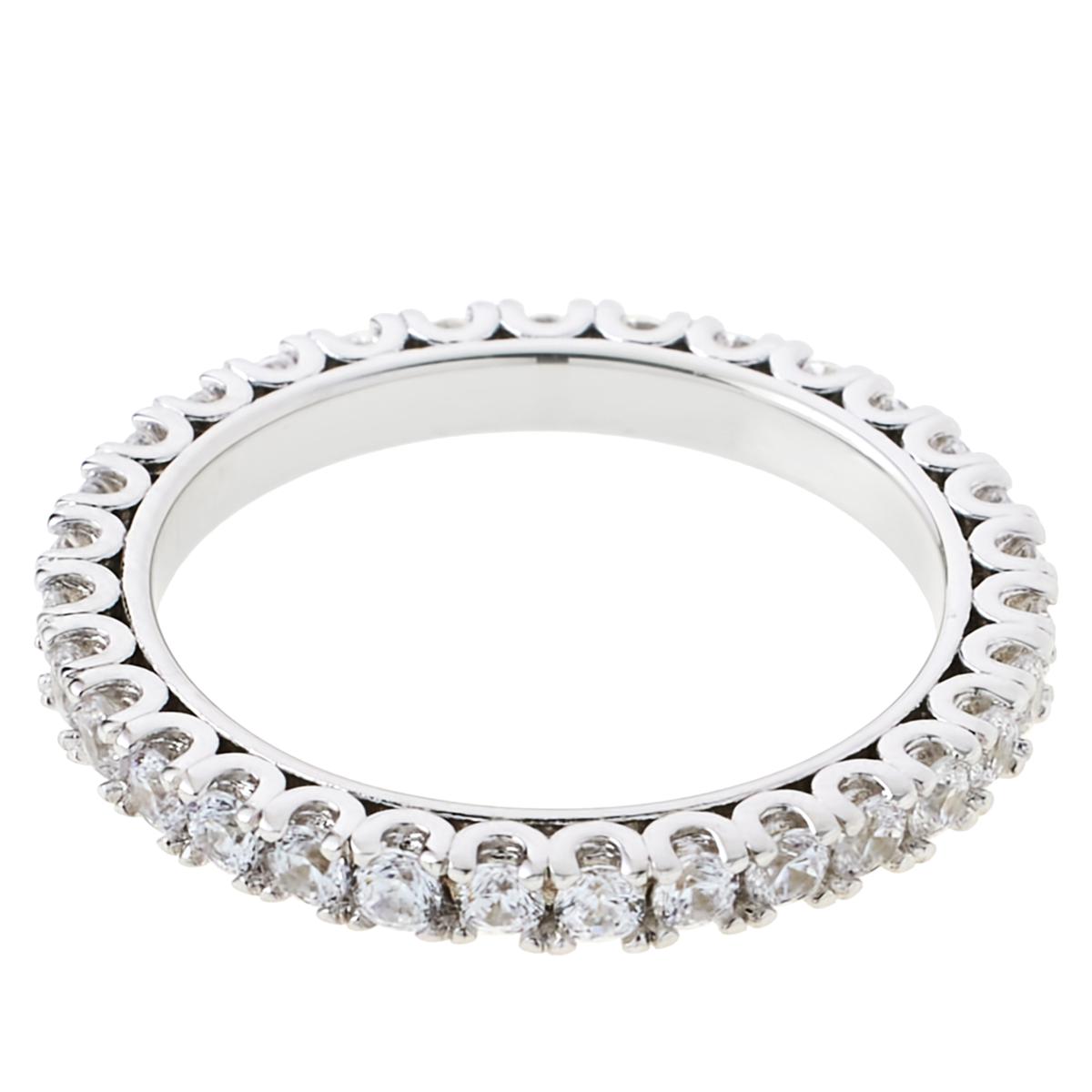 Crafted in polished sterling silver, the sleek eternity design makes this ring perfect for stacking, wearing alone as a statement of sophistication, or pairing with engagement and wedding bands.