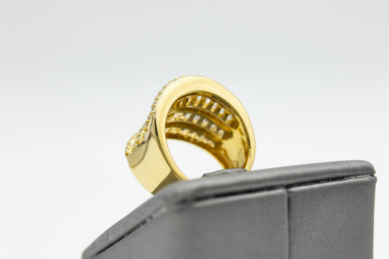 Goldclad Finish: The ring's goldclad sterling silver band adds warmth and opulence, elevating its overall style. The goldclad finish ensures a long-lasting, rich golden hue that enhances the brilliance of the CZ stones and adds extra glamour to your look.