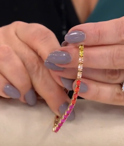 Add a vibrant spectrum of sparkle to your collection with the Absolute Sterling Silver Goldclad Simulated Sapphire Rainbow Line Bracelet. Featuring a continuous row of brilliantly faceted simulated sapphires in rainbow hues, this elegant line bracelet delivers colorful sophistication with a refined silhouette. Crafted in sterling silver with a warm goldclad finish, it measures 7-1/4" for a comfortable fit and shines beautifully alone or layered with other favorites.