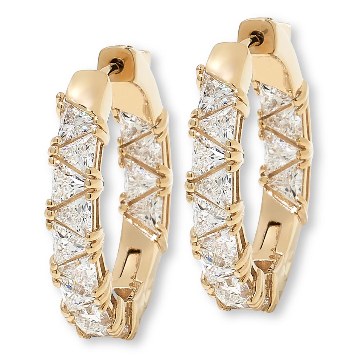 Who says you only have one "good" side? Not this earring. Our hoop's inside-outside design features modern trilliant cuts that sparkle everywhere it matters. Wear it for casual get-togethers. Break it out for formal affairs. Land a savvy loop that knows how to shine in any circle.