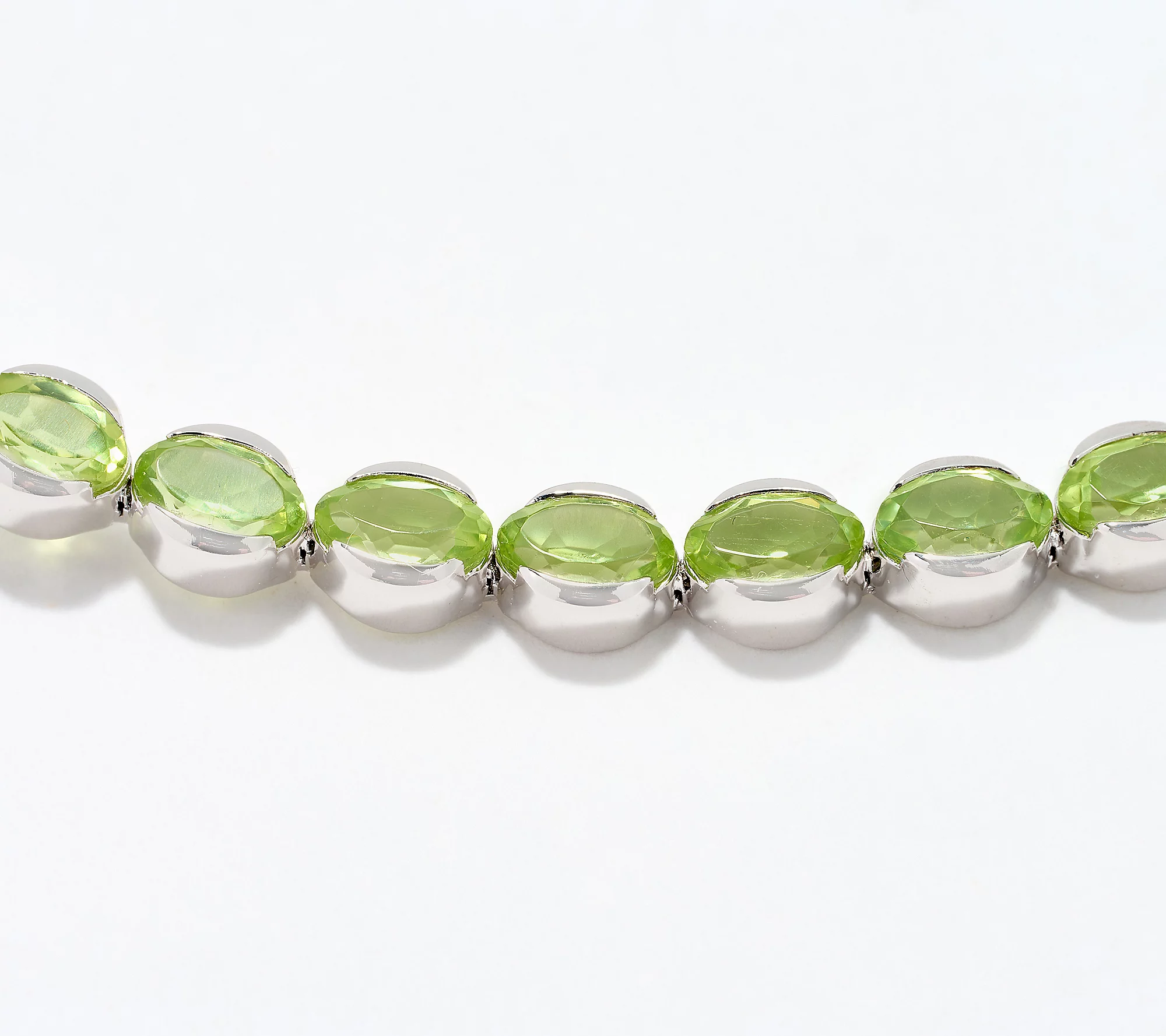 The bracelet gets a brilliant boost from beautiful oval-cut gemstones linked together in a semi-bezel setting. The prong-free design provides a smooth silhouette that's less likely to snag on a favorite knit top.