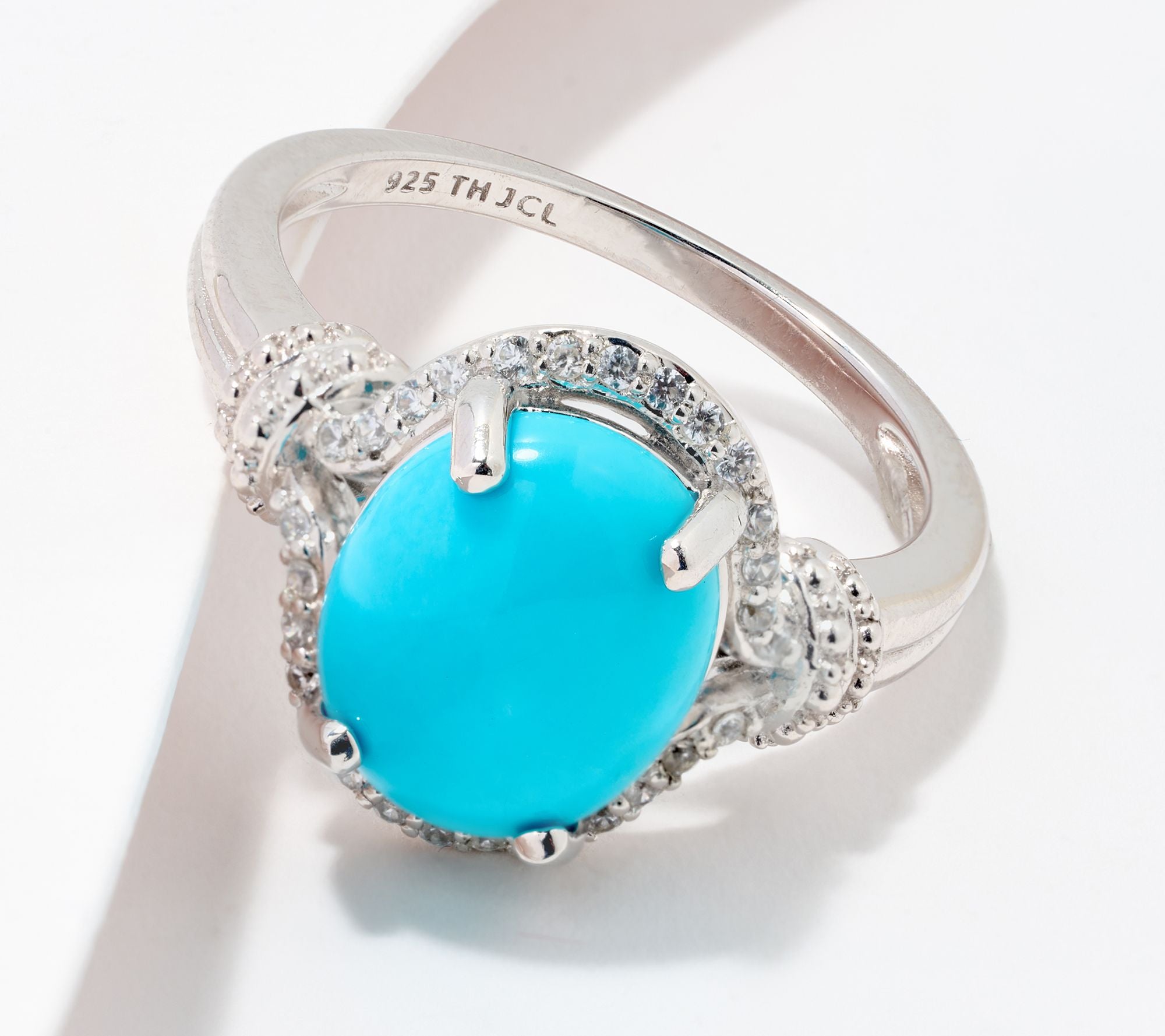 Place this sterling silver ring on your finger and exude vintage flair with an oval-shaped gemstone at the center surrounded by a halo of white zircon. From Affinity® Fine Jewelry.