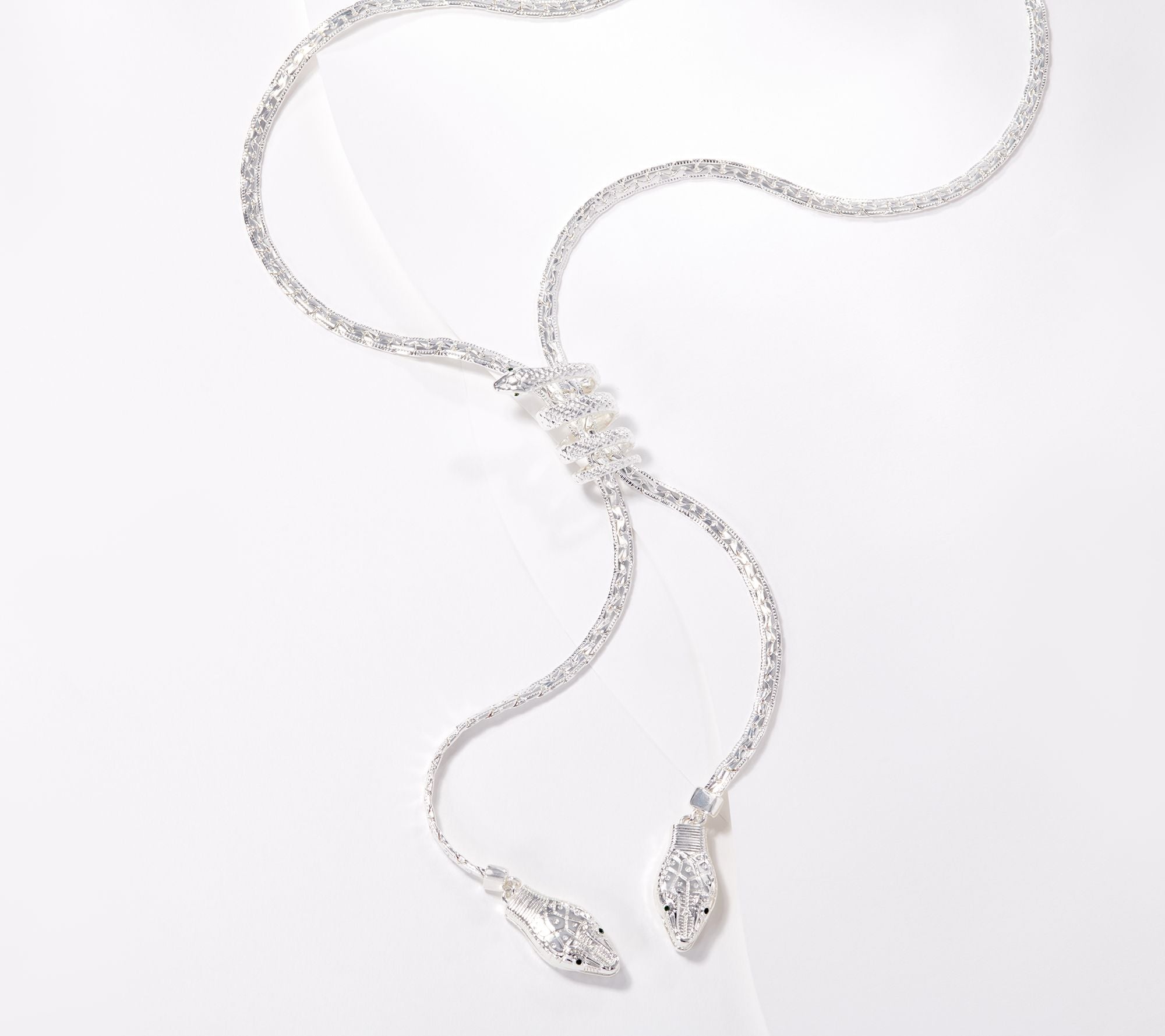 Charm them with this unique lariat necklace featuring a scintillating snake design. From Women with Control.