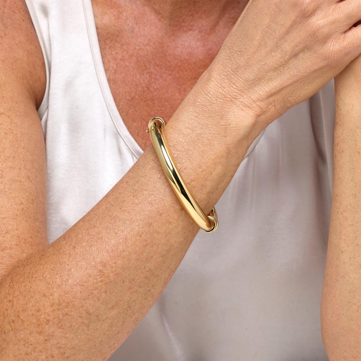 Easy-to-wear and perfect for any occasion, this 1980s-inspired bangle is the most well-rounded member of the bracelet family. Add its satisfyingly tubular take on staple style to your wardrobe.