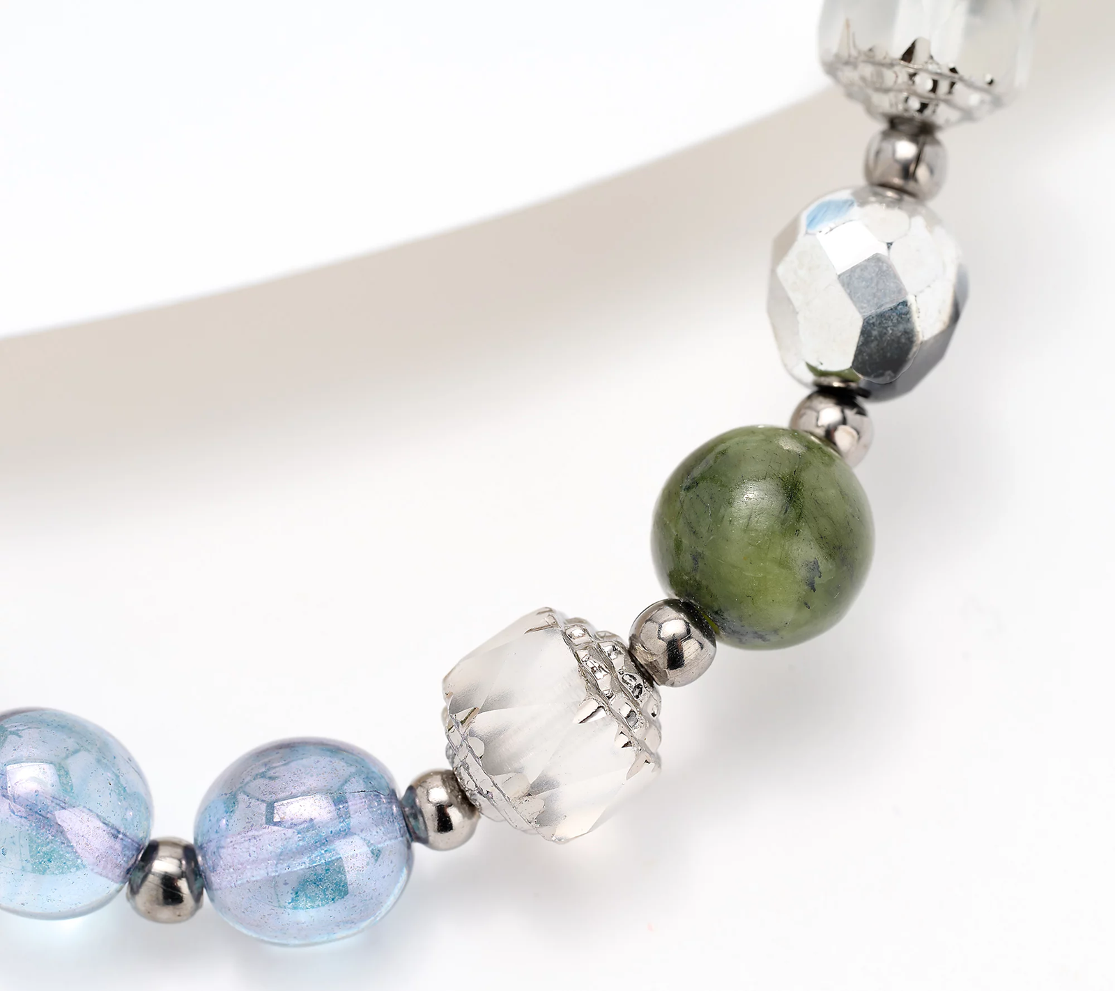 A sincere and stylish way to celebrate your faith, this silvertone stretch bracelet features your choice of cross along with Connemara marble and glass beads. Wear it as a north star or gift it to someone needing inspiration and guidance. From Connemara Marble.