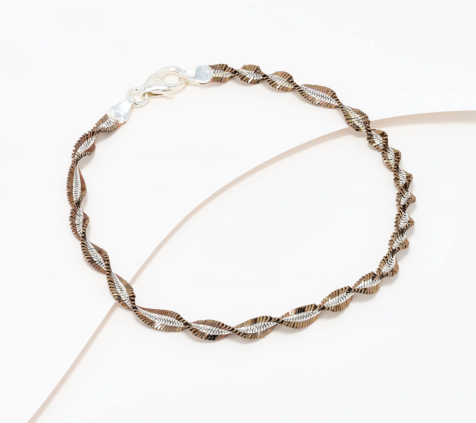 A dimensional twist on a timeless favorite, this haute herringbone bracelet adds elegance and texture to your look, whether you're dressing up for dinner or brightening up your go-to basics. The polished and textured finish catches the light beautifully, making it ideal for stacking or standing out on its own. From David Markstein.