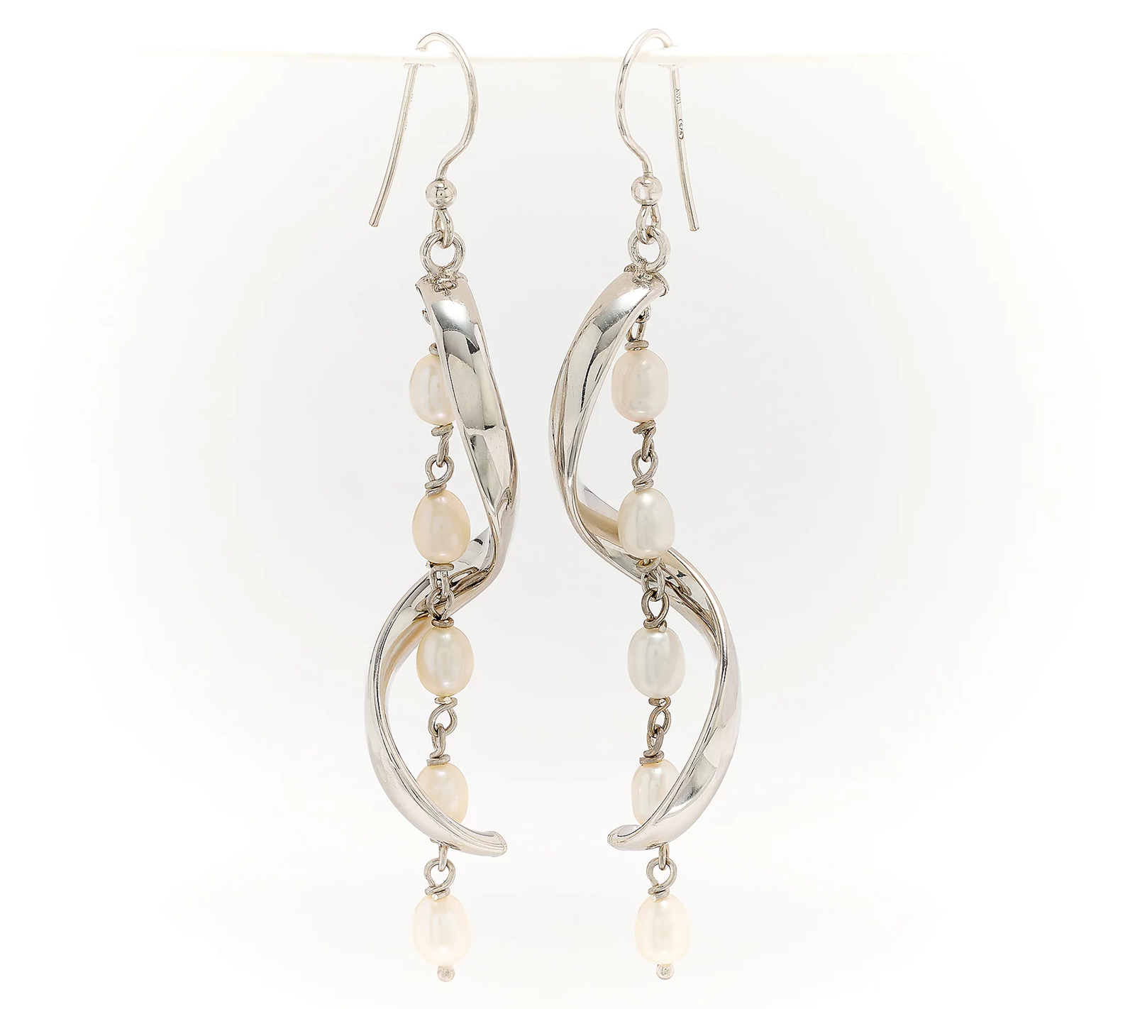 Cultured freshwater pearls and swirls. Who knew the two could be such a stunning combination? Don these dangly earrings at your next gathering and prepare for all eyes to be on you. From Honora.