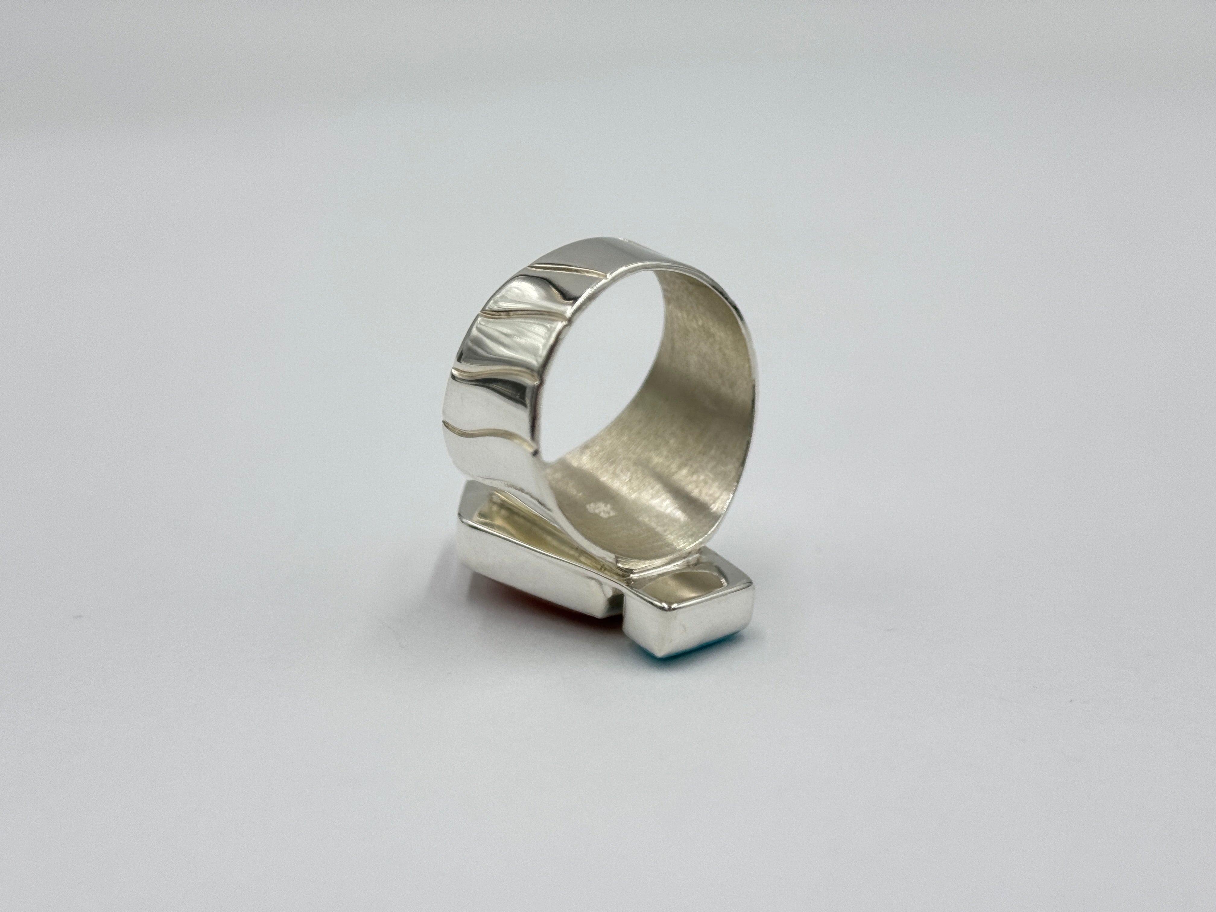 Crafted in solid .925 sterling silver, the wide, sculptural band features smooth polished contours that give the ring a substantial, comfortable feel. This is a true collector-style Jay King piece—artistic, confident, and unmistakably unique.