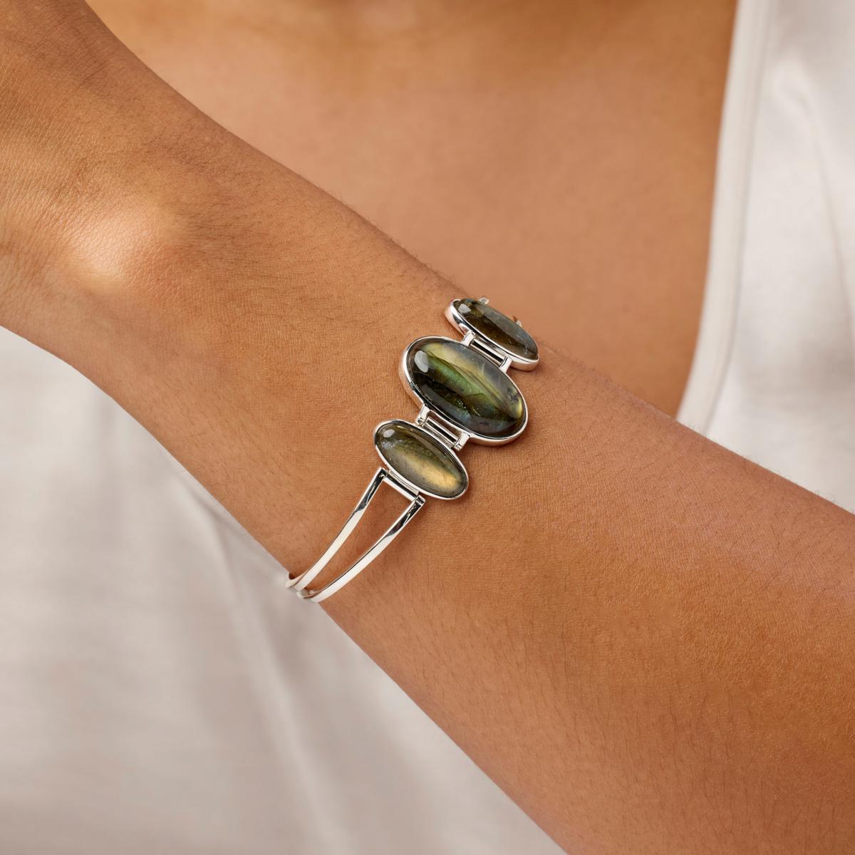 With a silhouette similar to a cuff but with the added benefit of a toggle closure, this handcrafted sterling silver and labradorite bracelet is sure to become a favorite jewelry accessory! From Jay's exclusive Gallery Collection.