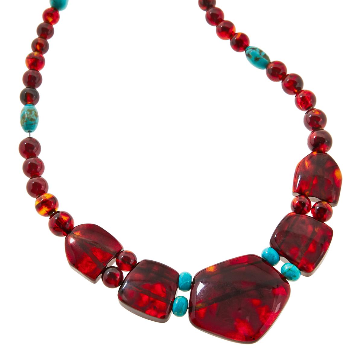 Dark brown Ukrainian amber paired with blue Campitos turquoise from Mexico give this sophisticated necklace design a chic, color contrast that's easy to dress up or down. From Jay King.
