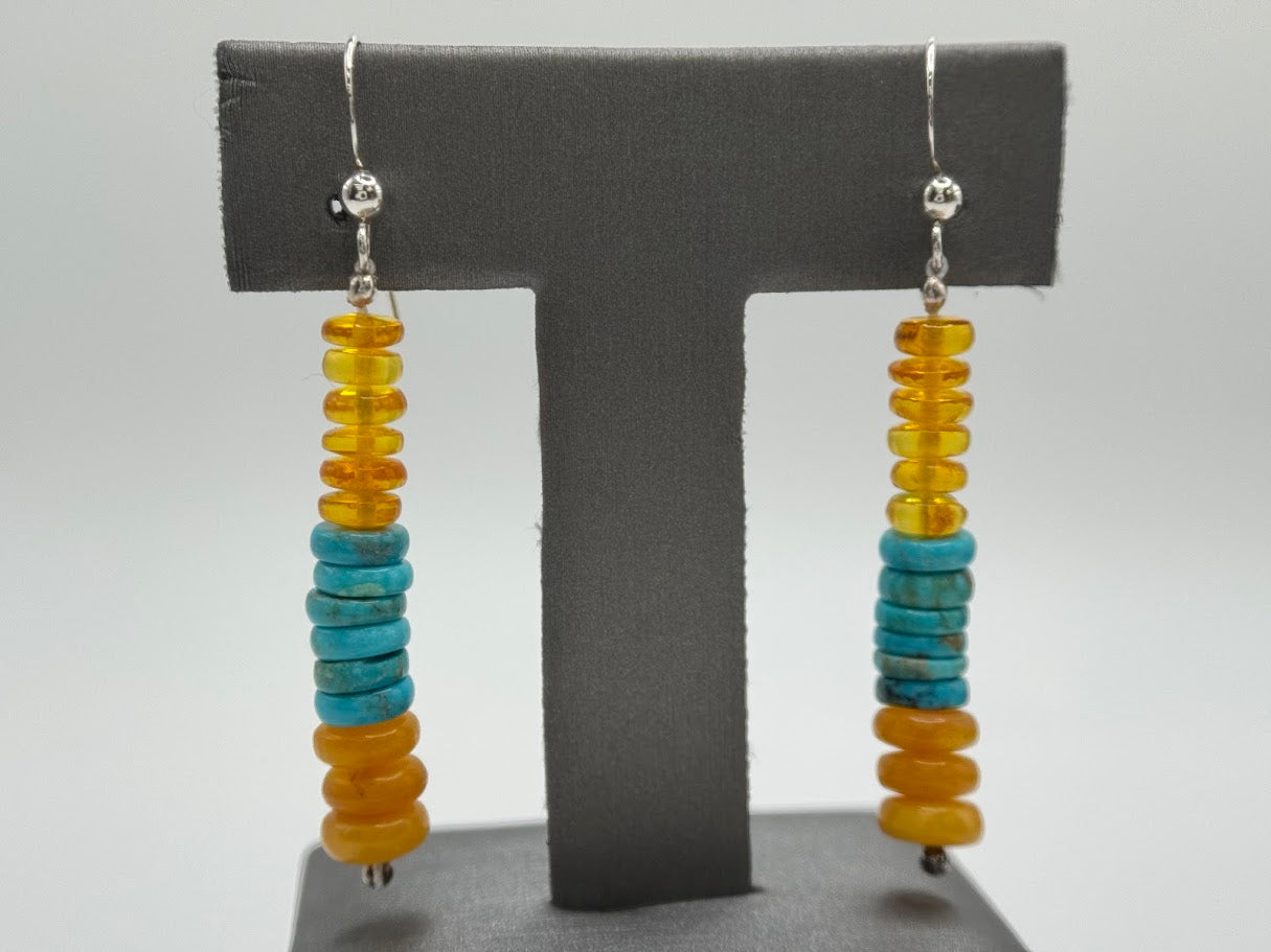 Genuine Amber & Turquoise: Features warm Baltic-style amber discs paired with contrasting turquoise accents—each piece naturally unique.