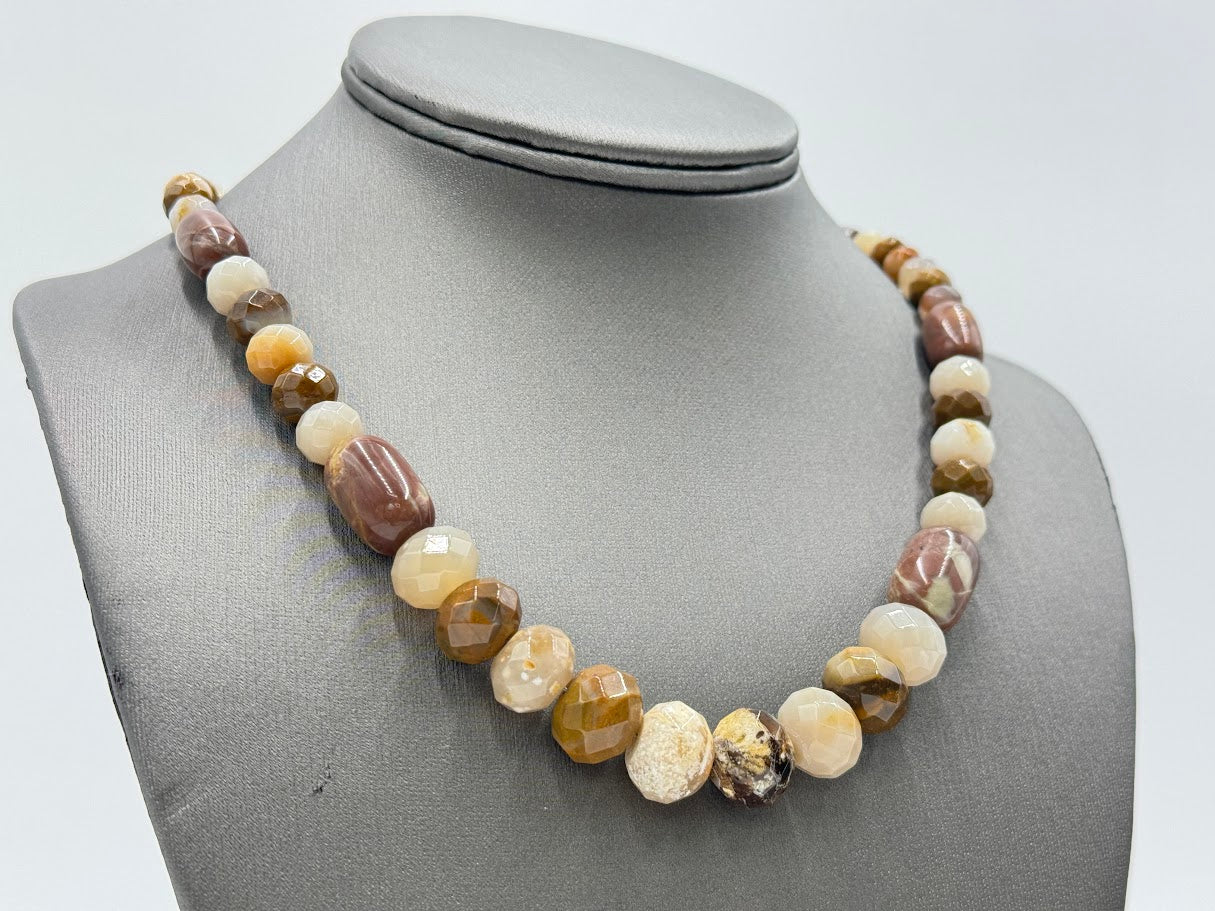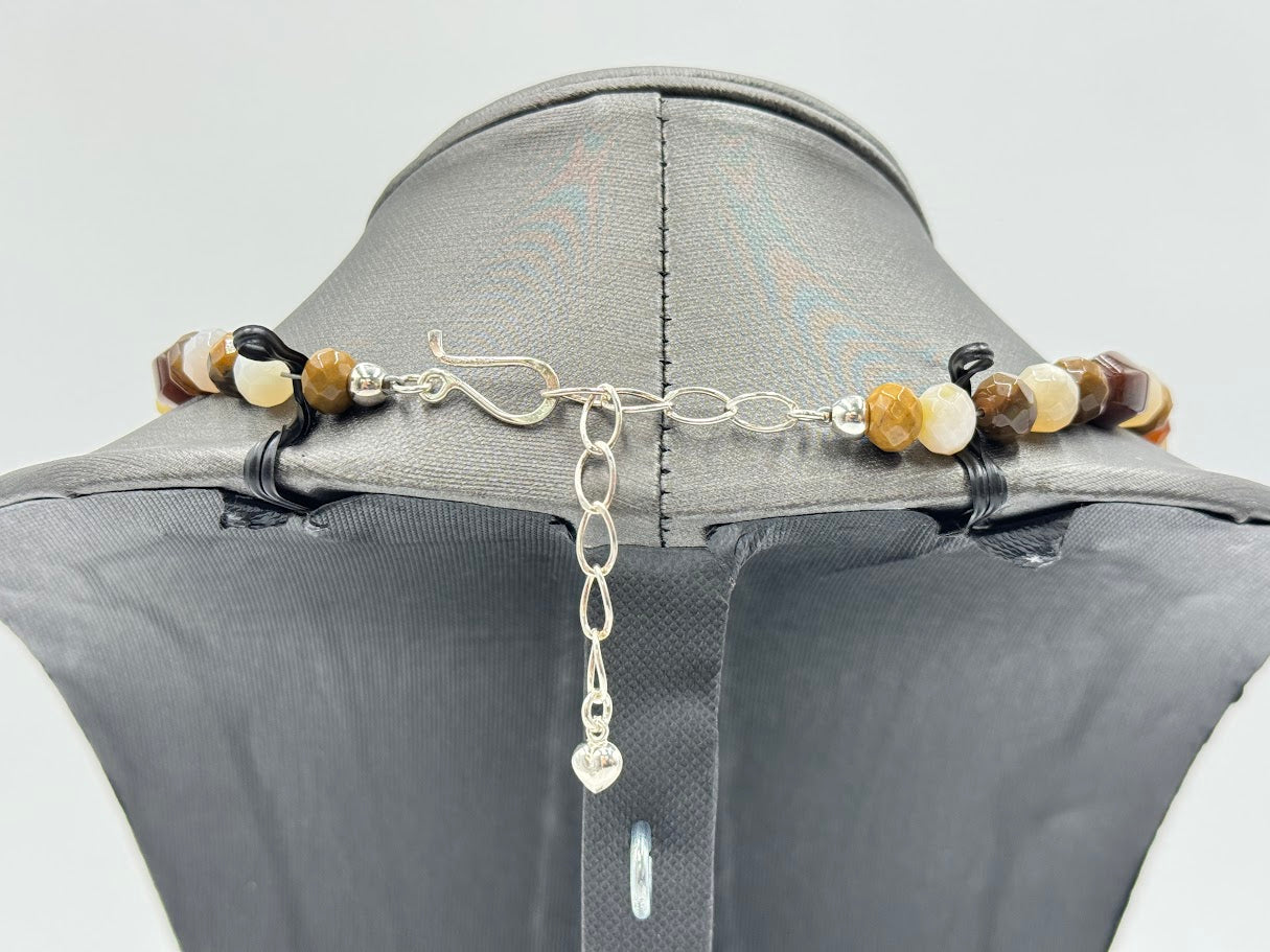Crafted in solid 925 sterling silver, this beaded necklace offers durability, quality, and a refined finish that complements the organic gemstones. The 18-inch length sits perfectly at the neckline, making it ideal for layering or wearing as a standalone statement. Finished with a secure lobster clasp, this piece balances everyday wearability with distinctive designer appeal.