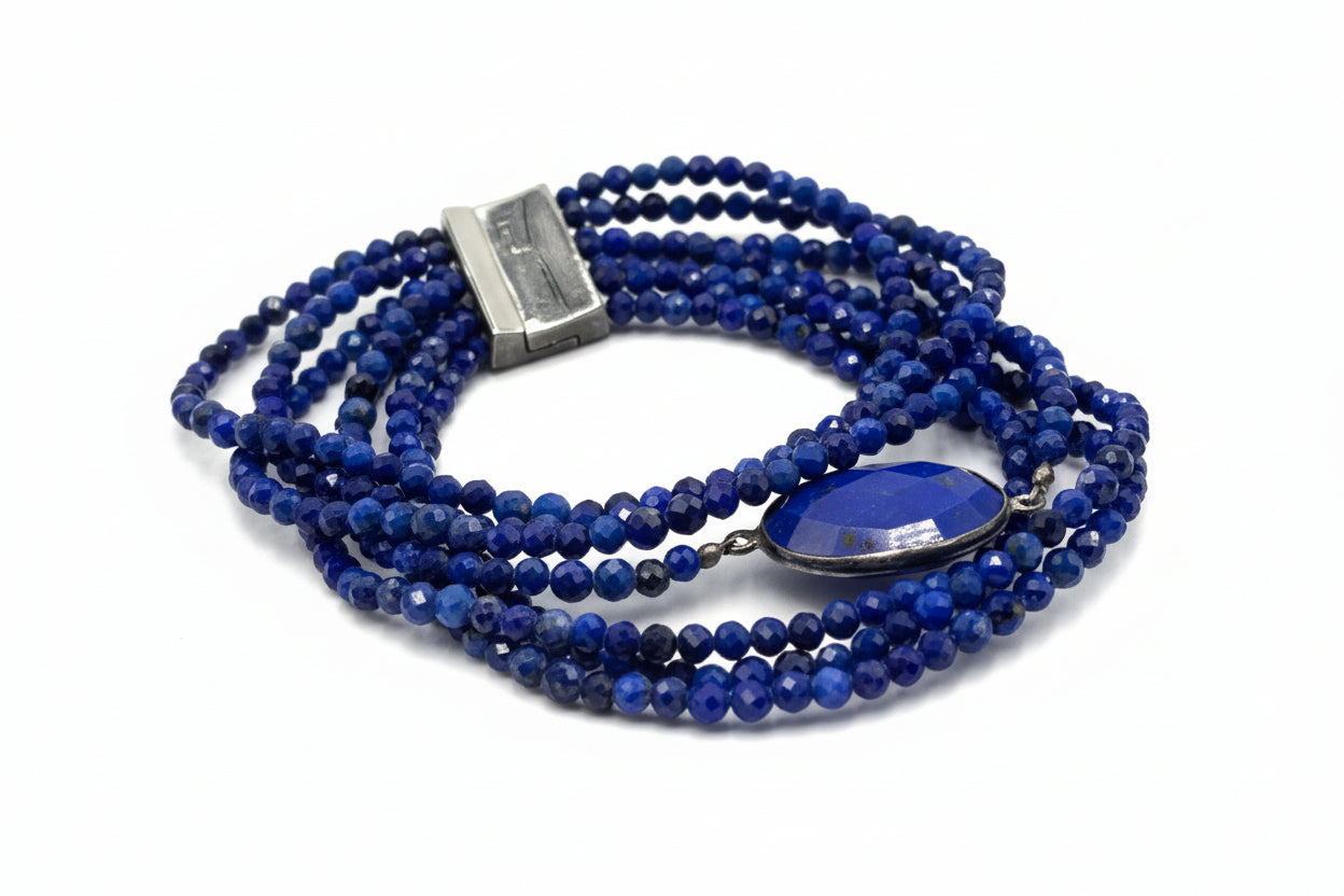 Jay King Sterling Silver Lapis 7-Strand Layered Magnetic Bracelet – A Bold Statement in Deep Blue