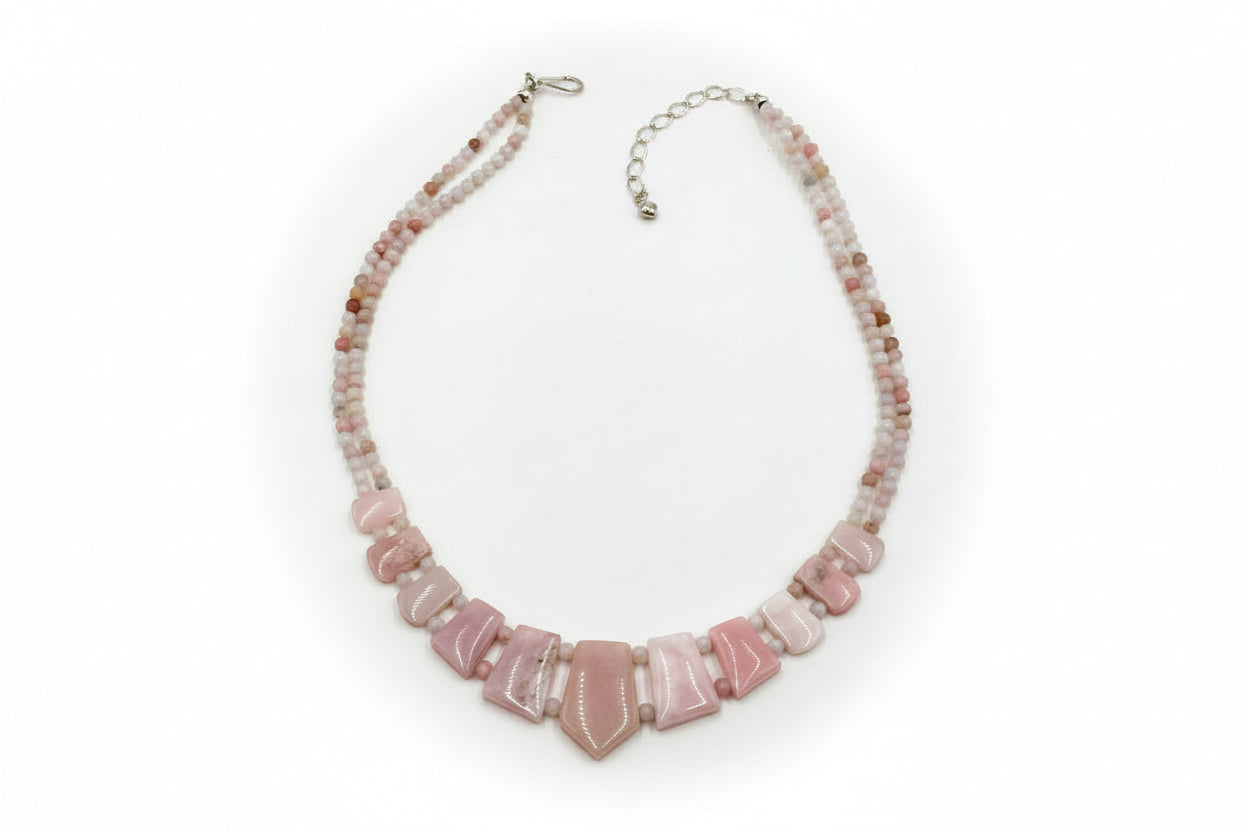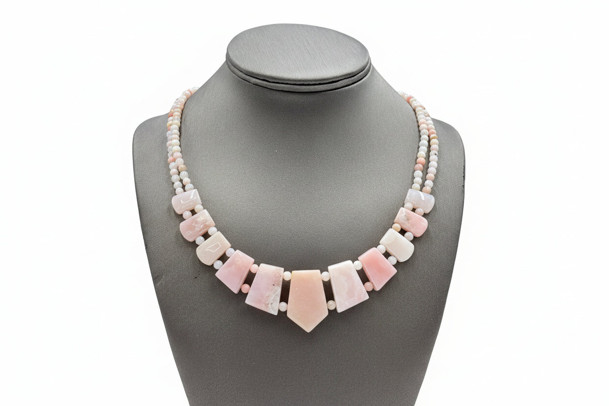 The soft blush tones of Peruvian pink opal make this necklace a stunning statement of understated elegance. Ideal for collectors and gemstone lovers alike, it’s a wearable piece of art that brightens every ensemble with natural warmth and sophistication.