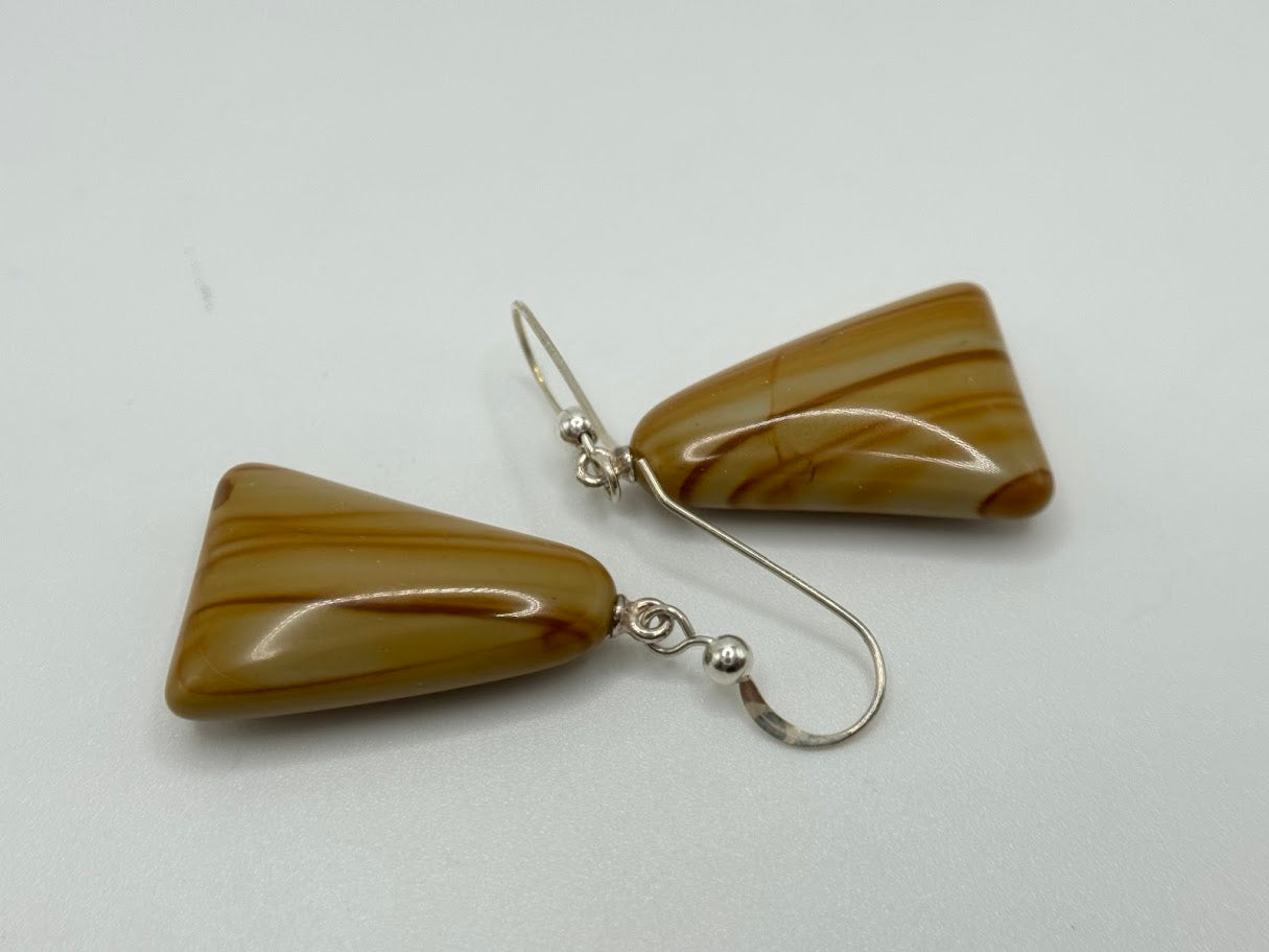 A striking pair of natural stone earrings from Jay King, featuring warm, earthy Picture Jasper cut into bold triangle-shaped drops. Each stone showcases its own unique landscape-like pattern, framed in genuine sterling silver.
