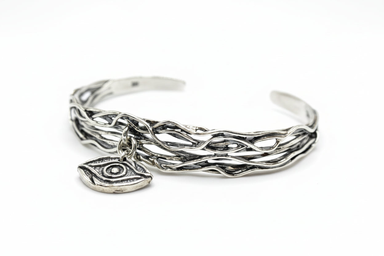 An open wavy design with a dangling charm makes this sterling silver cuff a contemporary keepsake for your already impressive jewelry collection. From Or Paz® Sterling Silver Jewelry.