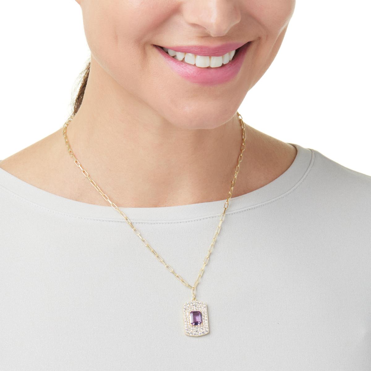 Indulge in understated elegance with this fabulous medallion pendant on a paperclip chain. Featuring a beautiful octagonalcut natural surrounded by pav white zircons, it's perfect to wear alone or layer with other necklaces for a chic look.