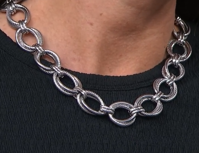 Bold, oversized oval links and a luxe, decorative texture help this stainless steel necklace create a chic, sophisticated statement at your neckline.