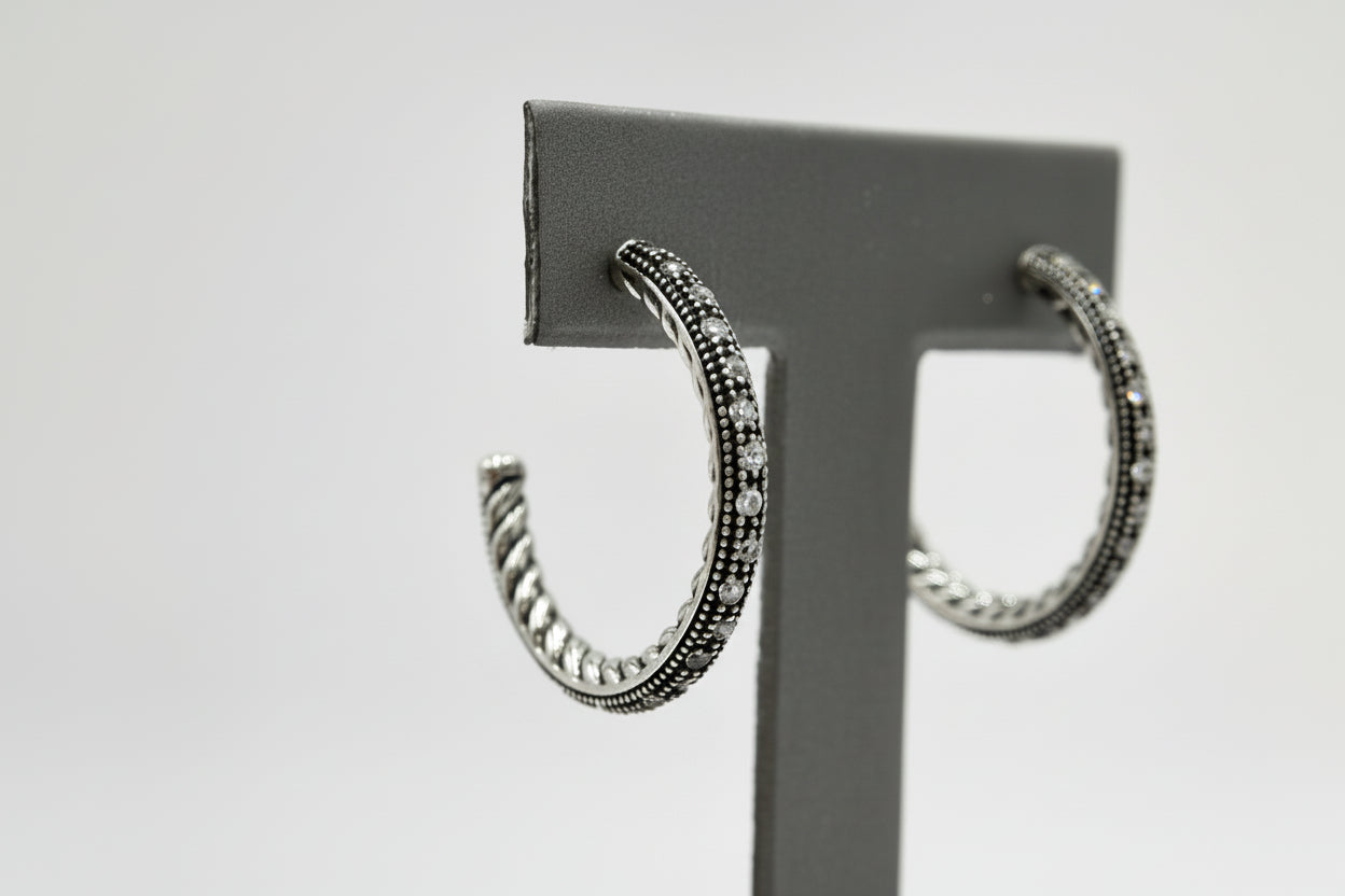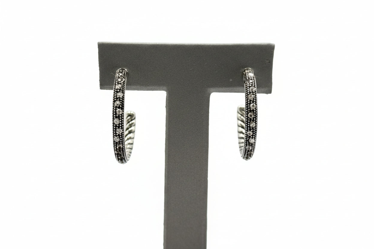 Steel by Design Rope Design Crystal Hoop Earrings, 1"