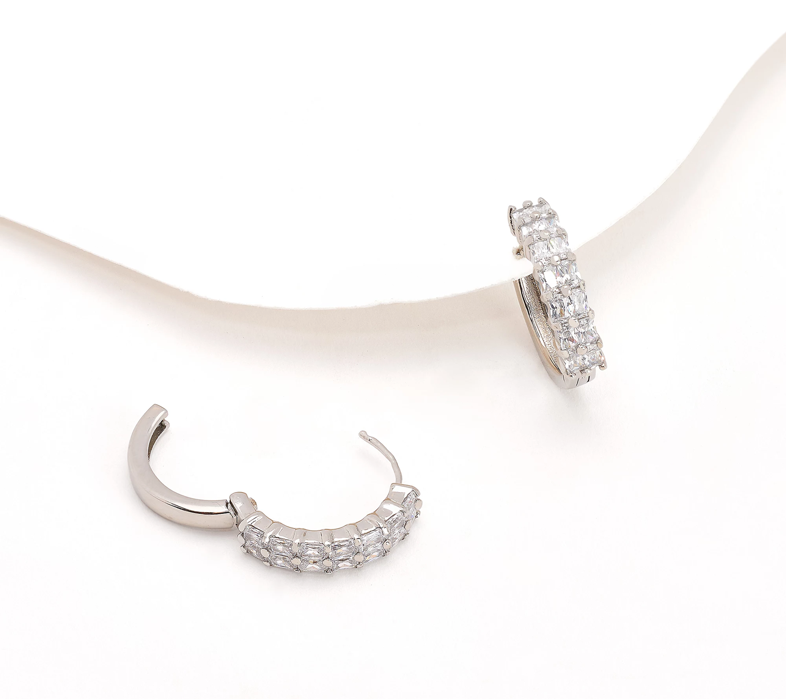For every day and special evenings alike, these hoop earrings bring a fresh twist to classic sparkle with two rows of baguette-cut Diamonique simulated diamonds.