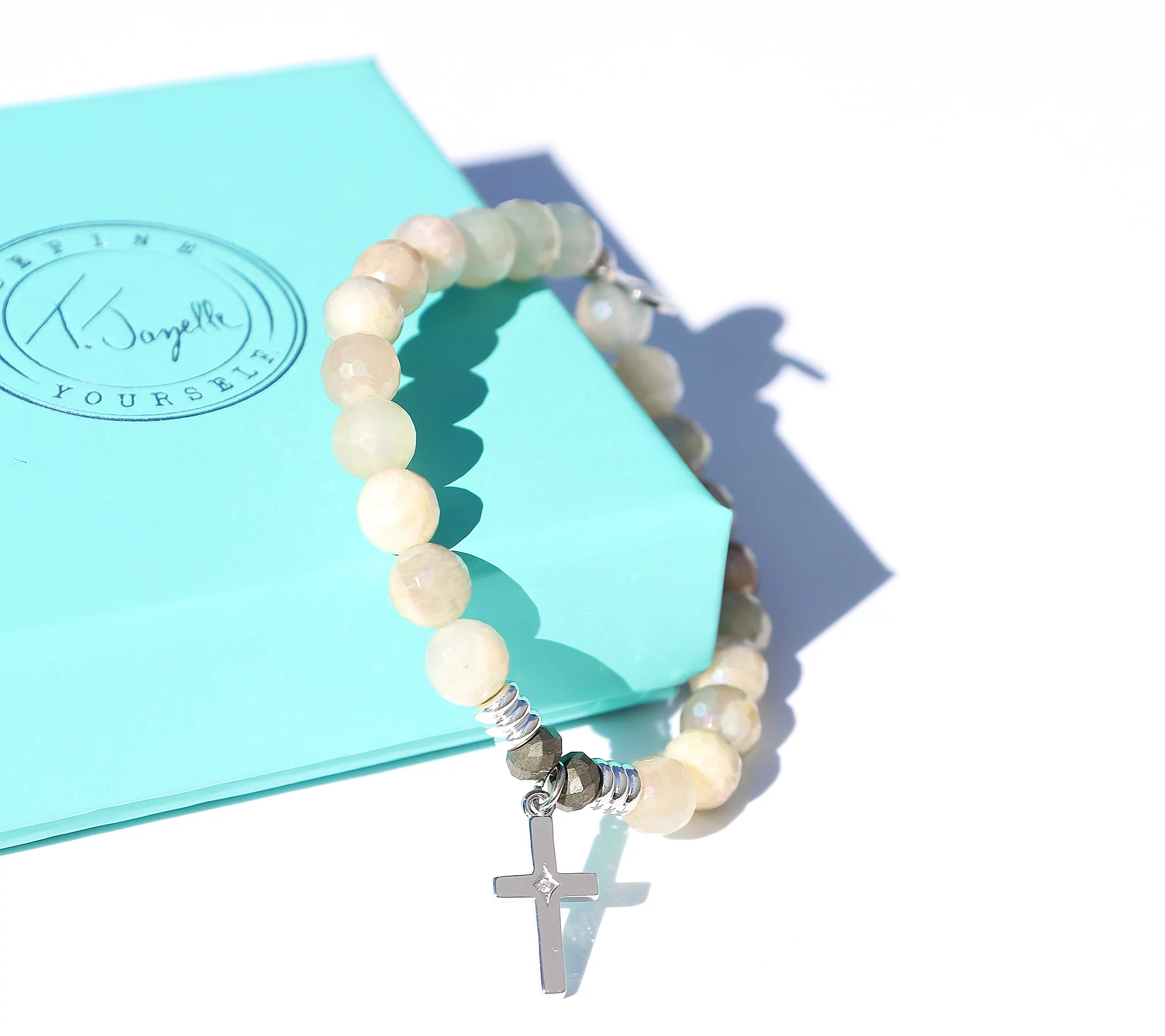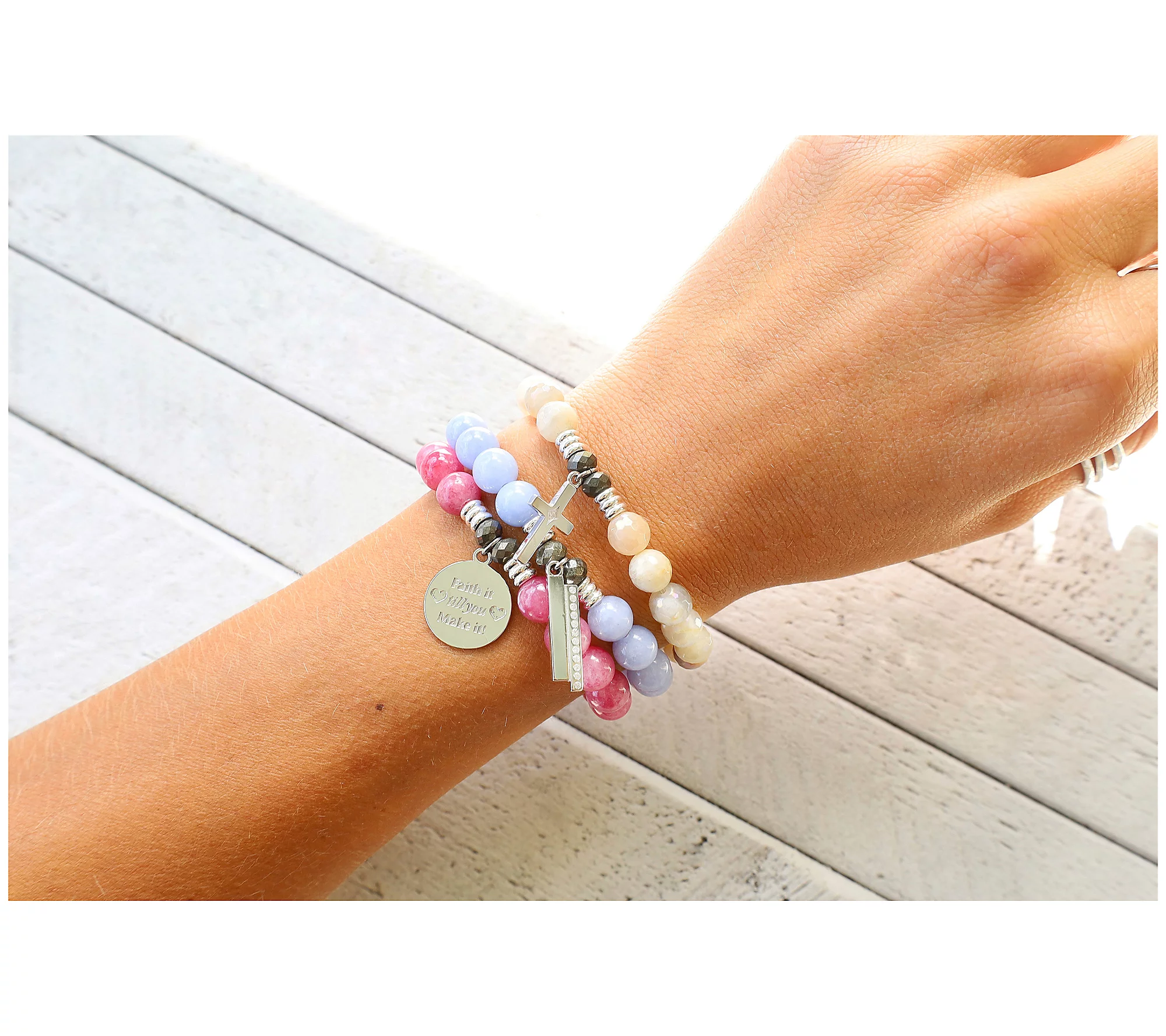 A meaningful message and an eye-catching accessory all in one, this gemstone beaded bracelet, complete with coordinating charm, is an inspiring style you'll want to wear every day. From T. Jazelle.
