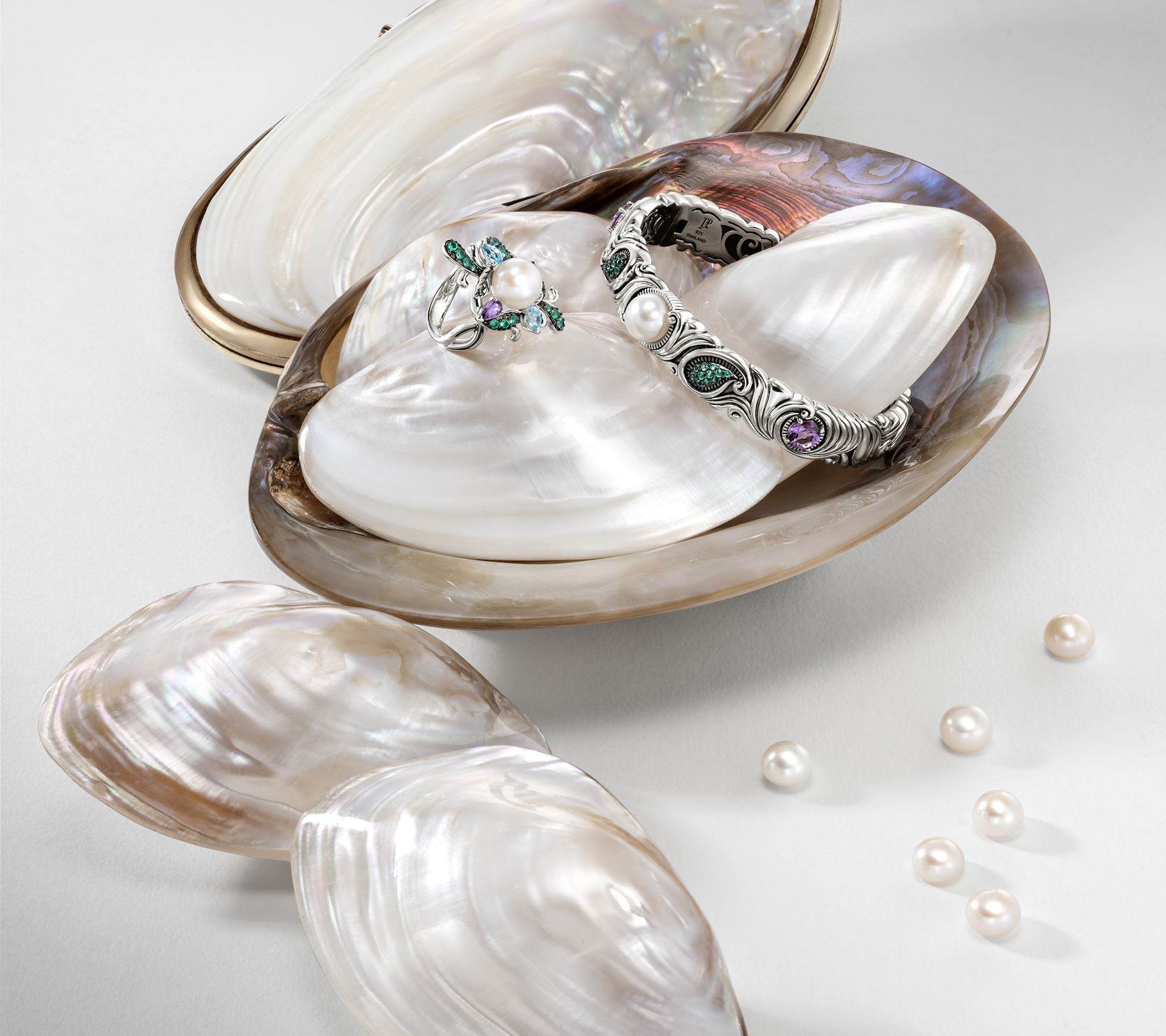 Accented with vibrant gemstones and a cultured freshwater pearl, this sterling silver ring makes a joyous addition to any outfit. From Third Person.