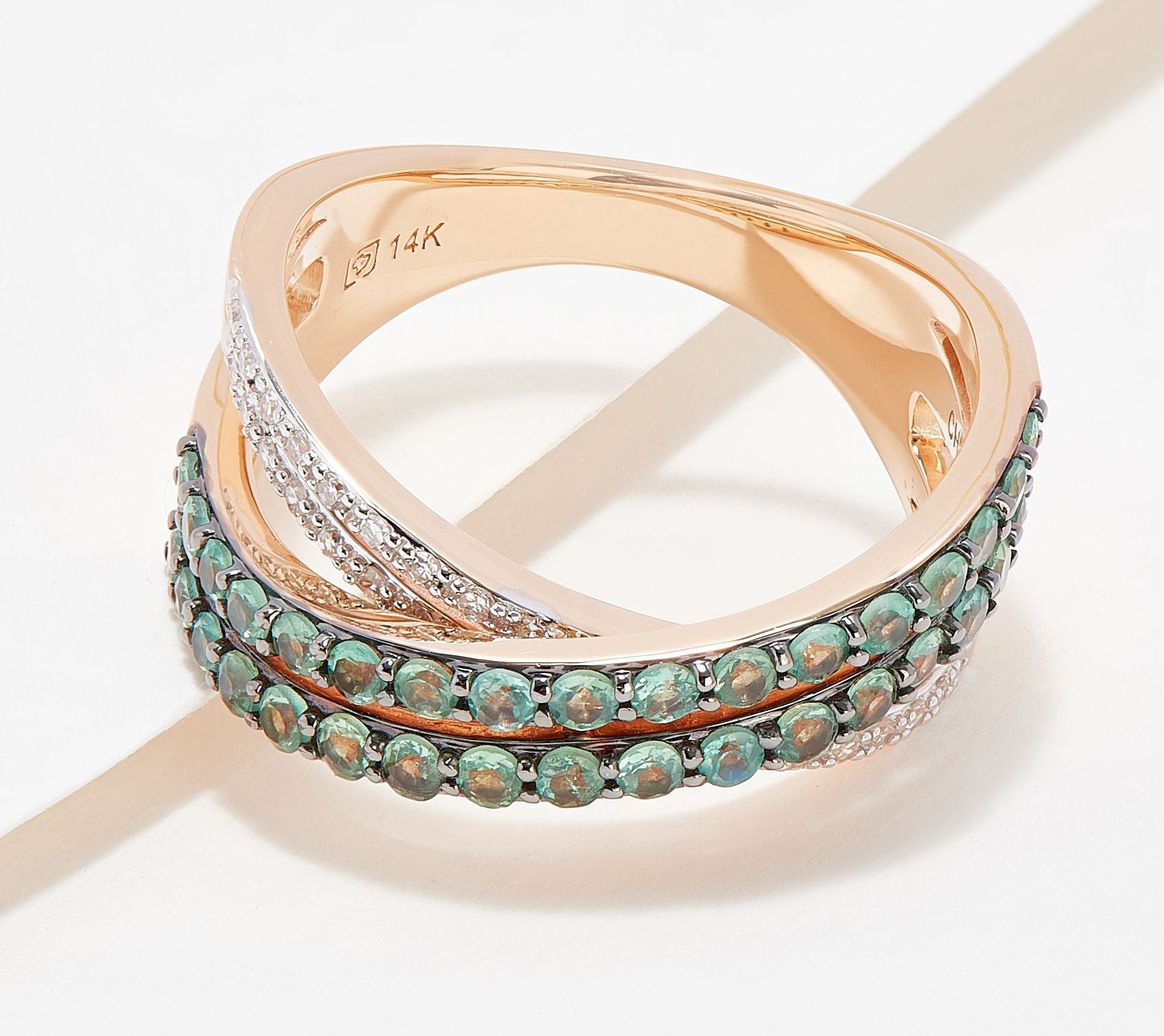 Alexandrite devotees and newbies alike -- This diamond-complemented design feels next-level fresh thanks to a cool crossover shape (i.e. it's like nothing else in your jewelry box).